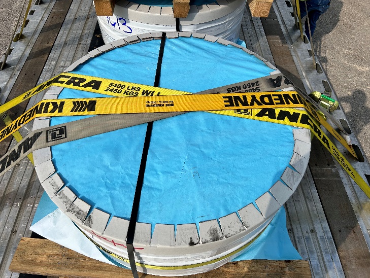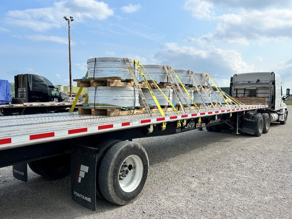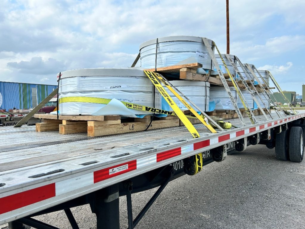 - Place a trip strap on the front and rear coil to prevent forward and rearward movement. Trip strap should go under the banding.