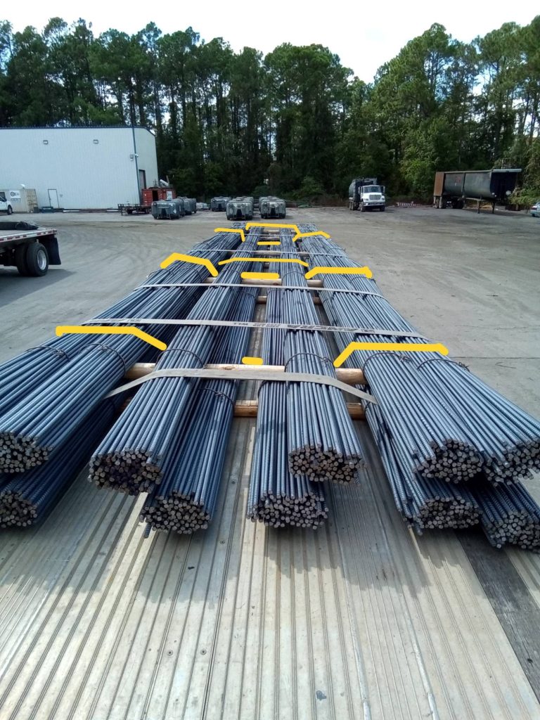 • If material has vertical spacing, 6 weave straps should be used, 2 alternating over/under and under/over on the front, middle, and rear of the load, in addition strap over the top between the weave straps.